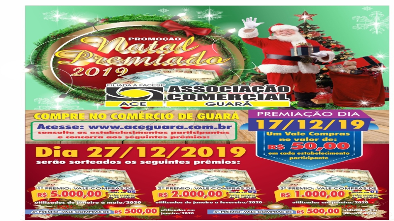 15/10/2019 Promoção Natal Premiado 2019 Faça suas compras nas empresas participantes, peça seu cupom e concorra, Boa Sorte!