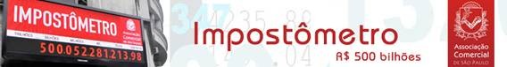 14/05/2012 Impostômetro da Associação Comercial de São Paulo chega a MEIO TRILHÃO de reais, quarta-feira (02) O Impostômetro da Associação Comercial de São Paulo (ACSP) alcançará quarta-feira (02), às 10 horas, R$ 500 bilhões em impostos federais, estaduais e municipais pagos pelos brasileiros desde 1º de janeiro deste ano.